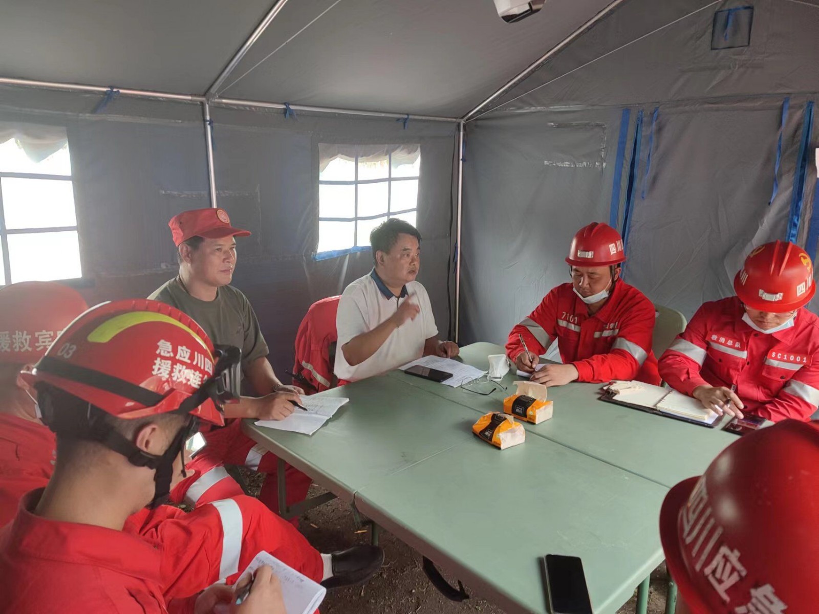 2022年9月5日,泸定县发生6.8级地震后,党中央、国务院高度重视,应急管理部第一时间启动应急响应,调派各方力量驰援灾区。嘉阳矿山救护队积极响应党中央、国务院号召,按照应急管理部指令要求迅速奔赴前线。他们坚持人民至上、生命至上,不舍昼夜、连续奋战,与时间赛跑、与死神抗争,主动承担抢险救援任务。
