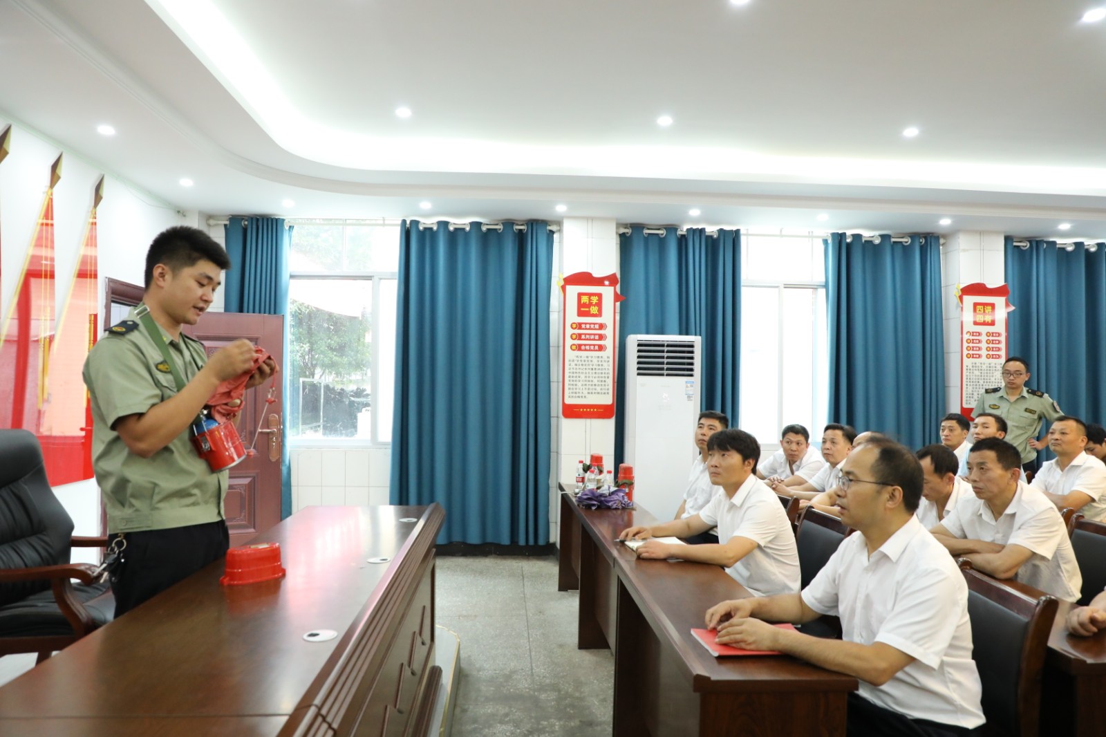 结合生产生活实际,救护队员从应急救援课件中遴选了急救章节,以人体血液循环系统构成为切入点,系统讲解伤员急救知识和应急处置方法,侧重于伤情判断和分类、心跳呼吸骤停的抢救、止血章节,特别对伤员伤情的判断、真假死亡的判别、出血判定和止血方法选择作了具体示范和剖析。隔绝式压缩氧气自救器培训,救护队员细化讲解了操作要领,以操作演示和职工人人动手的方式加强纠错指导,重点学习原理、结构、使用条件、性能、佩戴使用方法,对关键操作反复进行动作分解,讲解正确步骤。各队职工主动上台动手操作,按照救护队员的指导纠正不规范动作,巩固了应急操作技能。