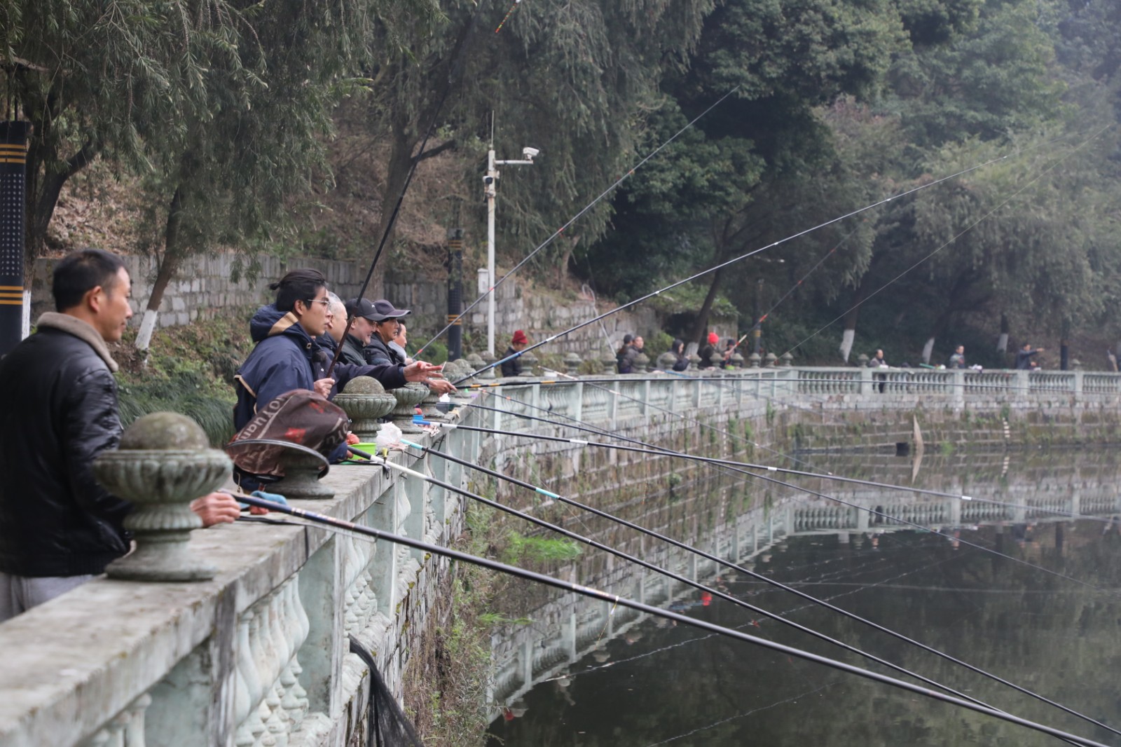 同时,在观音溪两岸,钓鱼活动如火如荼地进行。杨柳依依的河岸人头攒动,人们手持鱼竿,耐心等待着鱼儿上钩。每当鱼儿被成功钓起,岸上都会响起阵阵欢呼声,为成功的钓手送上祝福。