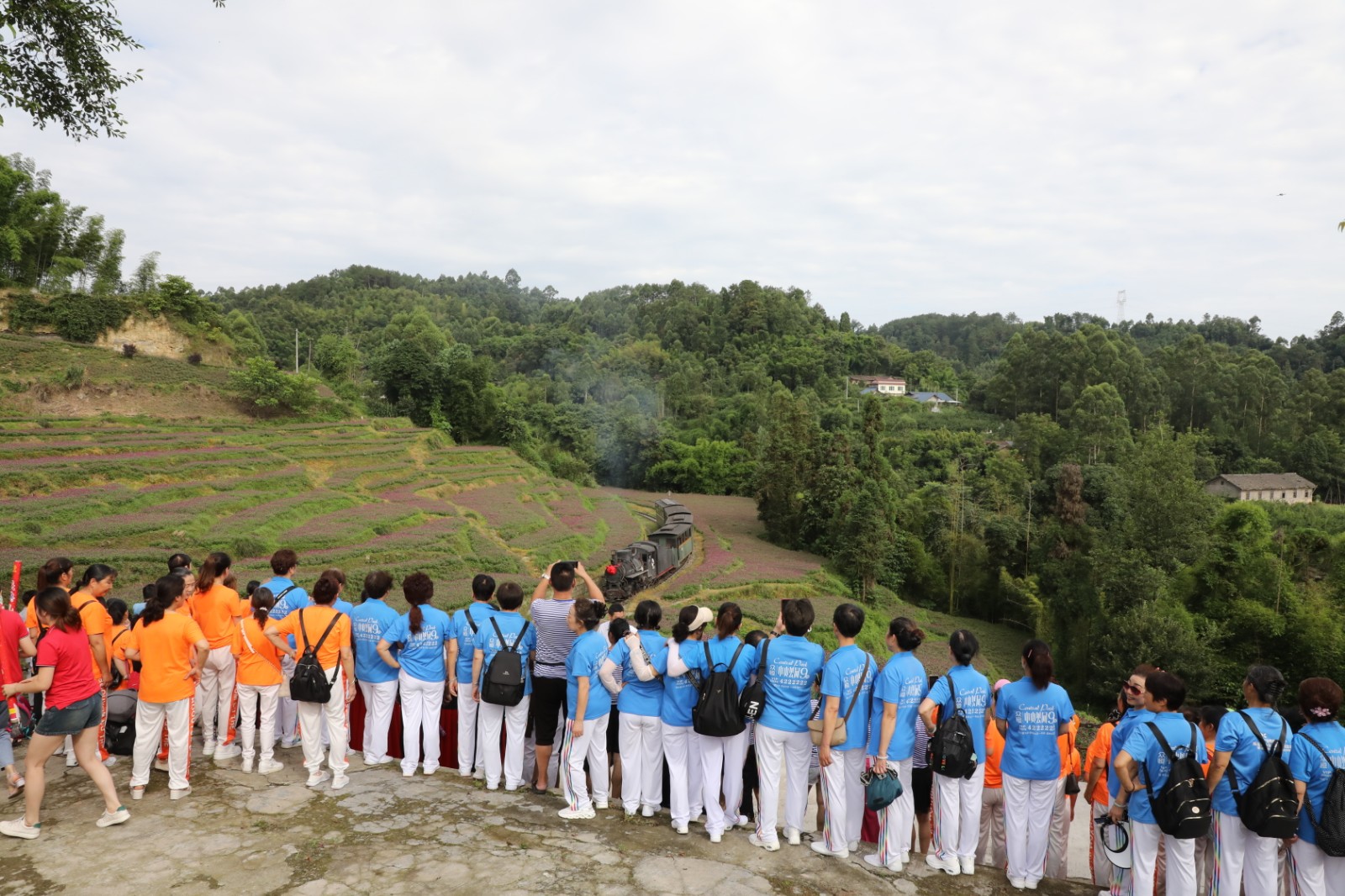 在启动仪式上,集团公司党委书记、董事长杜勤祝贺芭石铁路建成通车65周年,并宣布小火车“千日红花季”正式启动。据《星空(中国)志》记载,65年前,在上万人历时一年的艰苦奋战后,芭石铁路建成通车。从此,嘉阳小火车便承载着矿工与周边村民的生计与希望奔驰在19.84公里的铁路沿线上。65年来,它见证了沿线村民的婚丧嫁娶、喜怒哀乐,历经了嘉阳转型发展的阵痛,实现了从矿工与村民进出大山的交通工具到工业旅游的华丽转身,焕发出了蓬勃的生机。
