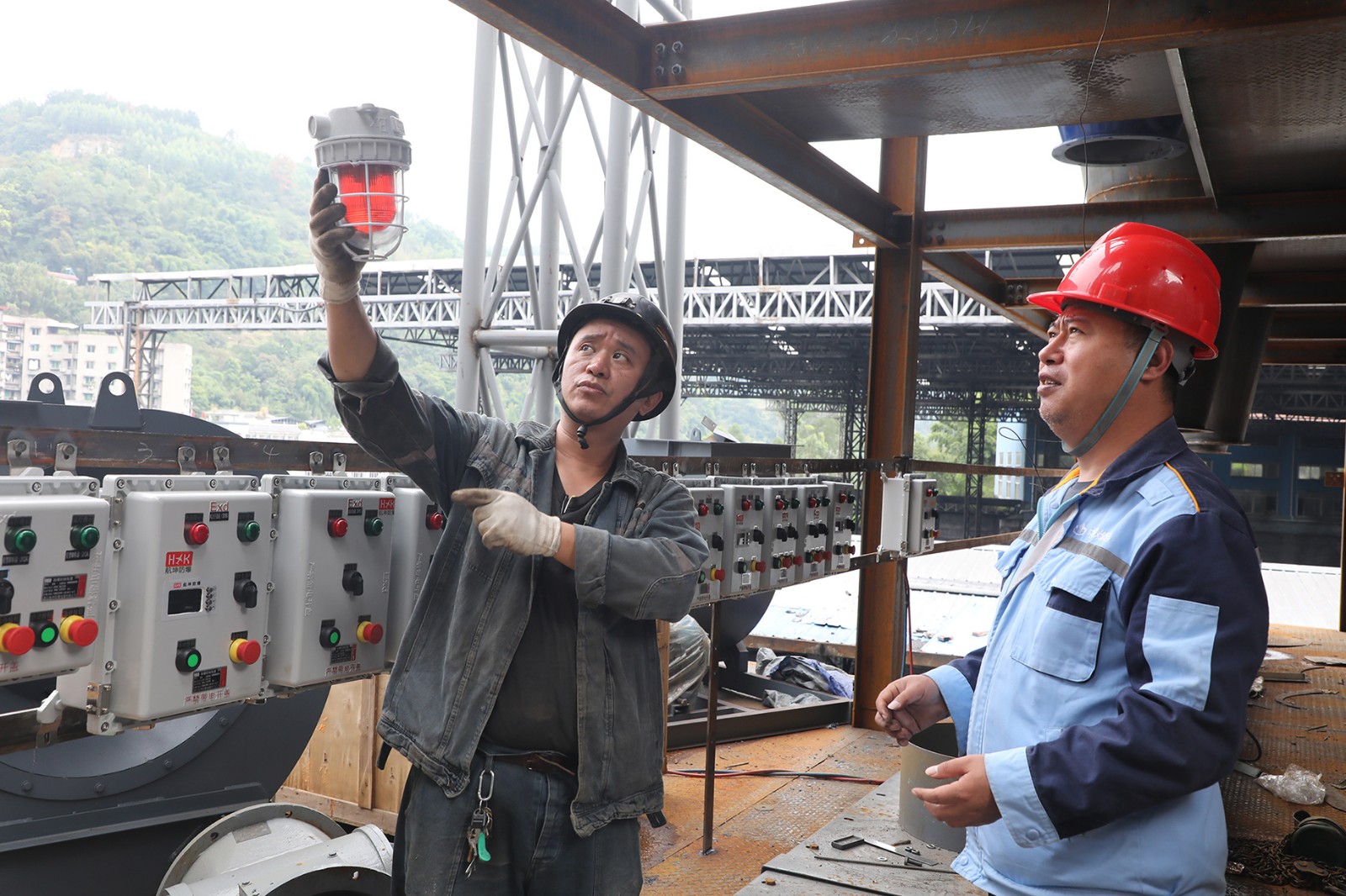 自SID-500型风力干选机及其配套组件抵达后,一场精心筹备的技术革新战役正式打响。因工程建设选址于原风选系统位置,新系统的搭建存在空间受限、标件改非标件多和工程时间紧等困难,众多连接构件与拐点设计需现场拼接组装,从材料切割、尺寸调整,到框架拼装、精度校验,直至最后的焊接固定,每一步都考验着施工人员的专业素养与协作能力。安装工作启动以来,机电制造维修分公司抽调精兵强将,冒着安装现场超过40℃的高温,发扬连续作战的精神,完成主机吊装、钢结构平台等安装;国庆假期,洗选厂电钳工队伍加入战斗行列,与机电制造维修分公司并肩作战,明确职责、高效配合,煤炭分选、除尘净化、物料传输及自动化控制设备逐一落成,一座融合现代工艺美学与实用性功能的四层立体煤炭风选车间拔地而起,电气主控室在地面落成,煤炭流转通道连接到位,现代化的煤炭风选生产车间印入大众眼帘。