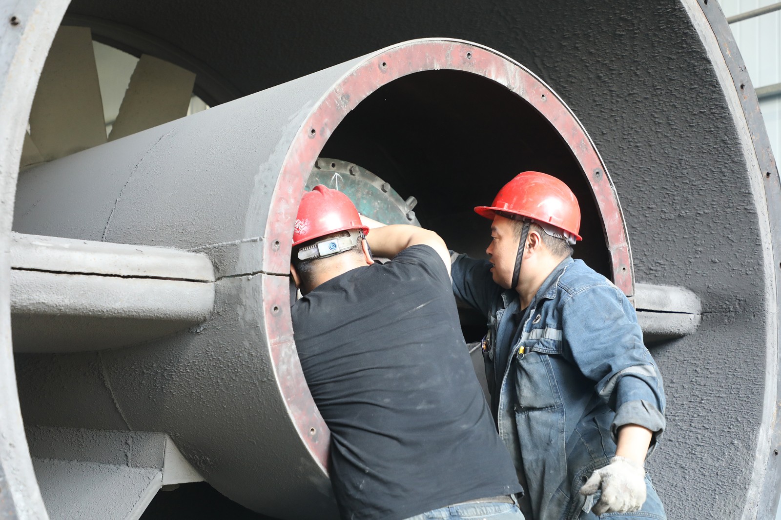 针对观音溪主通风机使用年限长、锈蚀严重、性能下降等问题,检修重点更换了塔加高、圆变方、内扩散器等多个设施和部件。同时,对电机、轴承、风叶等关键部位进行全方位保养。同步,检修人员对防雷电设施和供电线路稳定性进行了严格测试,全力营造安全可靠的设备运行环境。