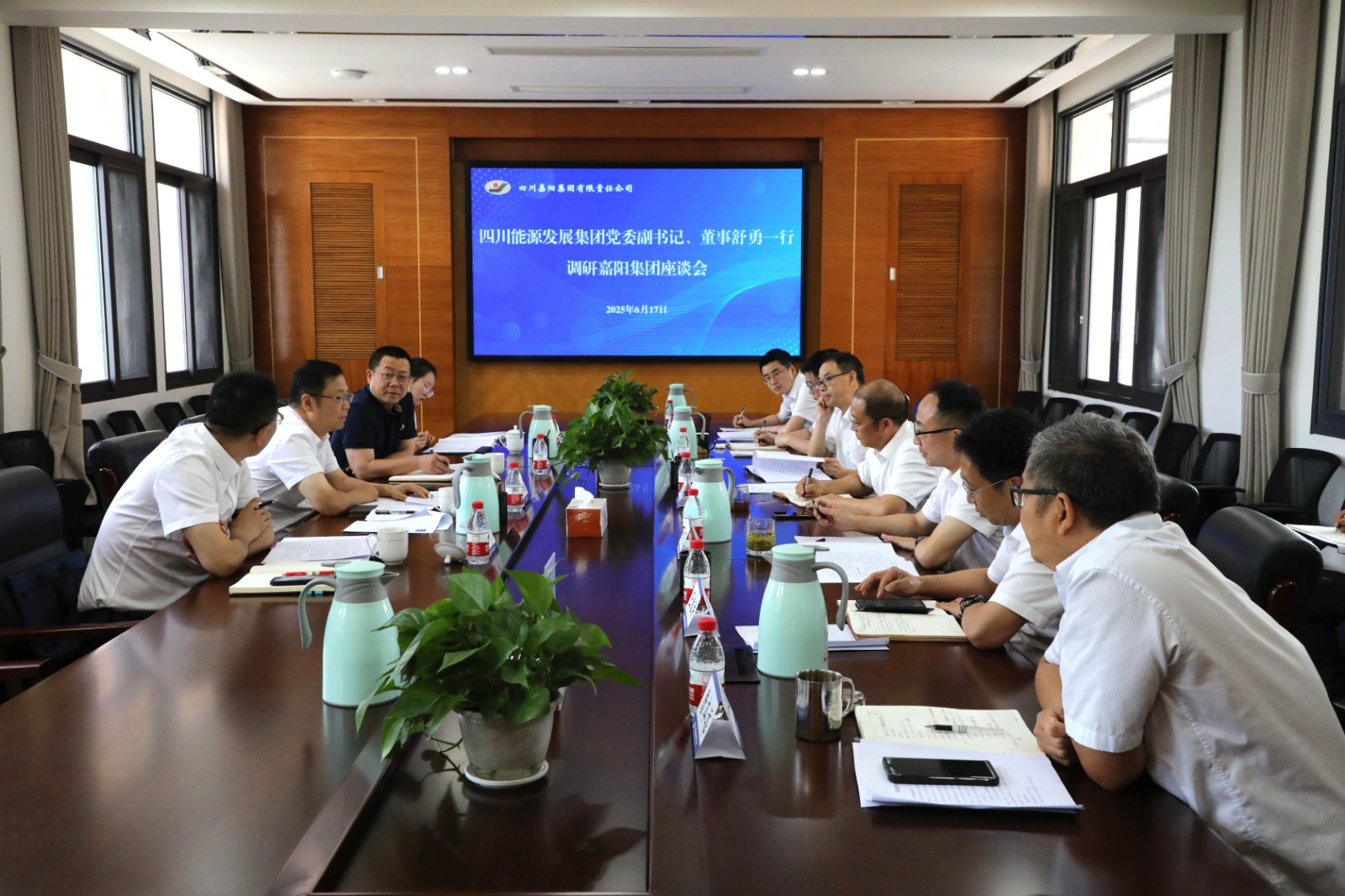 6月17日,四川能源发展集团党委副书记、董事舒勇率队到星空(中国)调研,听取了生产经营、安全生产、项目推进、党建工作、干部队伍建设等工作情况汇报。