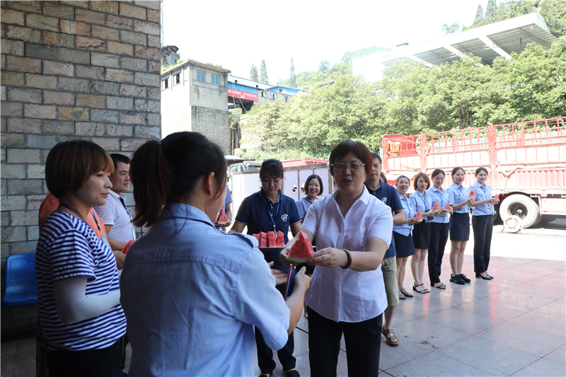 刘晓扬主席一行人不顾长途行车的劳顿,下车直奔骄阳下的嘉阳煤矿井口工业广场,下车间、走作业现场,刘晓扬主席一边招呼大家停下手中的工作休息,一边将西瓜、冰粉、矿泉水等解暑饮品送到职工手中,并关切地询问职工生产、生活等情况,嘱咐大家在高温作业时,要注意防暑降温,增强自身安全防范意识,合理安排作业内容,确保自身身体健康和企业安全生产。