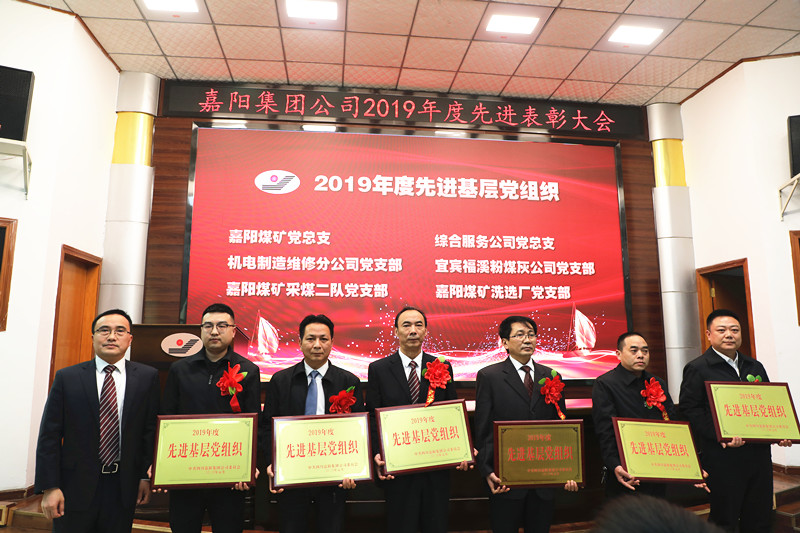 党委书记、董事长杜勤为五好党支部颁奖,公司2019年五好党支部他们是:嘉阳煤矿党总支、机电制造维修分公司党支部、综合服务公司党总支、宜宾福溪粉煤灰公司党支部 、嘉阳煤矿采煤二队党支部、嘉阳煤矿洗选厂党支部。