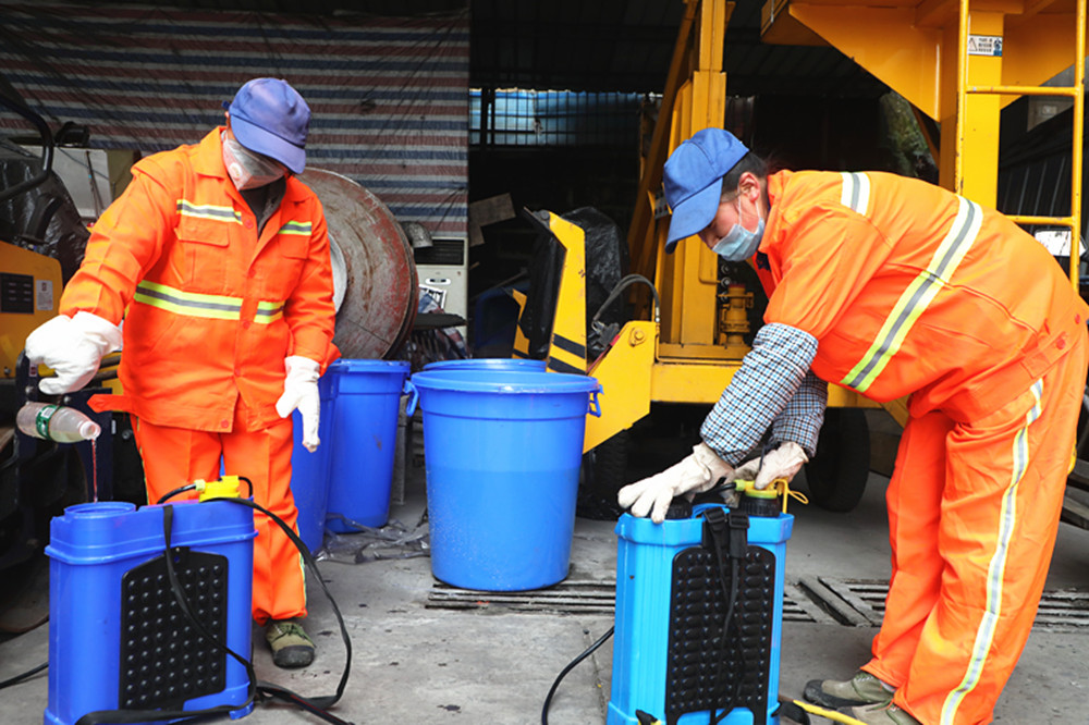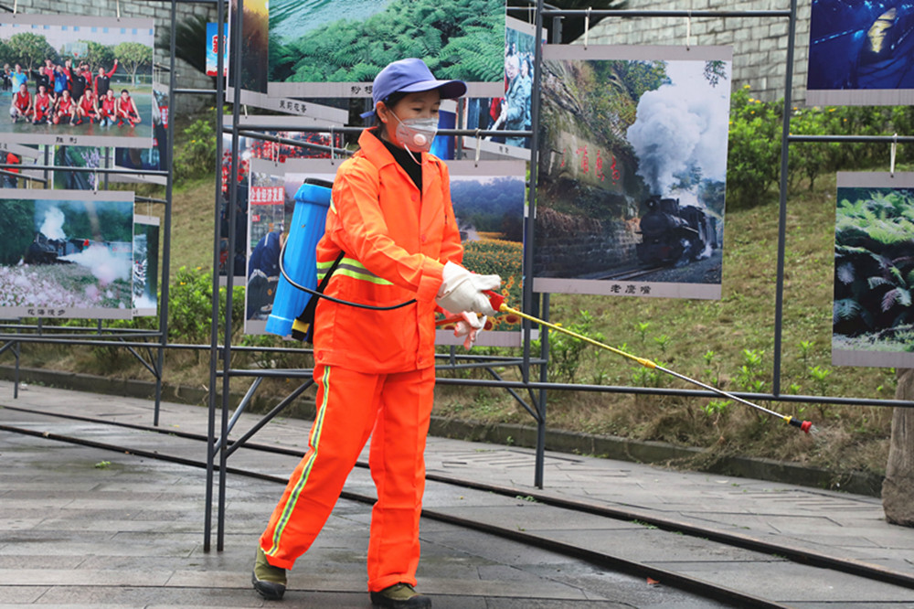 按照预定计划,环卫班消毒范围包括新老两个矿区和一个石溪片区,矿区中一个观音溪花园面积就达5000平方米,细算下来消毒区域达数万平方米!“出门戴口罩,别去凑热闹……”耳旁不时传来防疫宣传知识和举措,原来在绿化班常常形影不离的邓容和邓琼两姐妹因分工区域不同,第一天抗“疫”却要分开了,而且必须到处串,所到之处必须消毒无遗漏,她们深知防疫工作最终要落实到基层,落实到每个人的行动,自己的岗位正是基础中的重中之重!