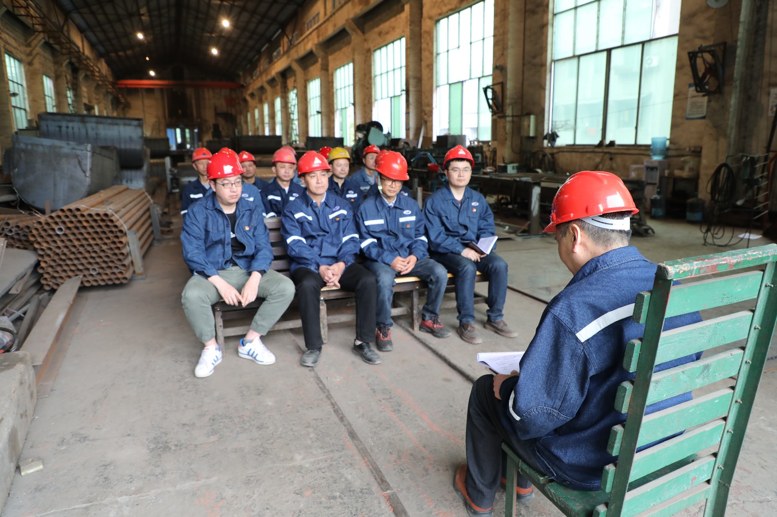 平时喧嚣的锻钳车间变成了侃侃而谈的临时课堂,13名正式党员、入党积极分子围坐在一起听党支部书记王俊德讲党课。什么是机电分公司人的初心?怎么样将党史学习教育与生产实际联系起来?王俊德书记的党课内容结合机电分公司实际,生动、接地气,讲述了共产党伟大而光辉的百年历程,与共产党的成立、发展、壮大相比,机电分公司在生产经营上遇到的困难是暂时的也是完全可以克服的。新的铸造车间在紧锣密鼓地建设之中,这也是机电分公司所有职工未来的希望。党员同志们要有信心,汲取初心力量,弘扬“燃烧”精神,撸起袖子加油干,圆满完成集团公司下达的经营目标任务,从而实现工资、待遇稳步提升。激情澎湃的党课内容让现场的党员同志们备受鼓舞,现场掌声热烈。总装车间主任周学军颇有感慨地说:“参加了今天党支部组织的党史学习教育,我认为作为基层管理者,就是要带领车间员工努力做好安全生产,实现职工收入不断提高,排除万难,勇创佳绩!”