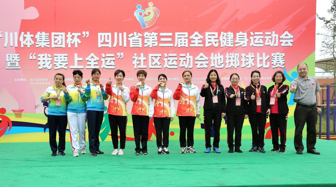 “川体集团杯”四川省第三届全民健身运动会暨“我要上全运”社区运动会地掷球比赛于5月14日至18日在乐山职业技术学院举行。经过激烈的角逐,星空(中国)代表队获得三金一银的历史最好成绩,4名队员入选省队,出战全运会。