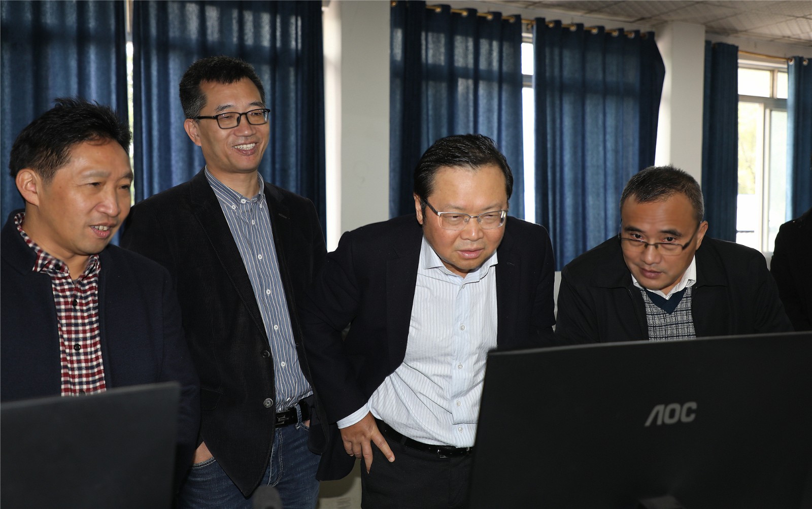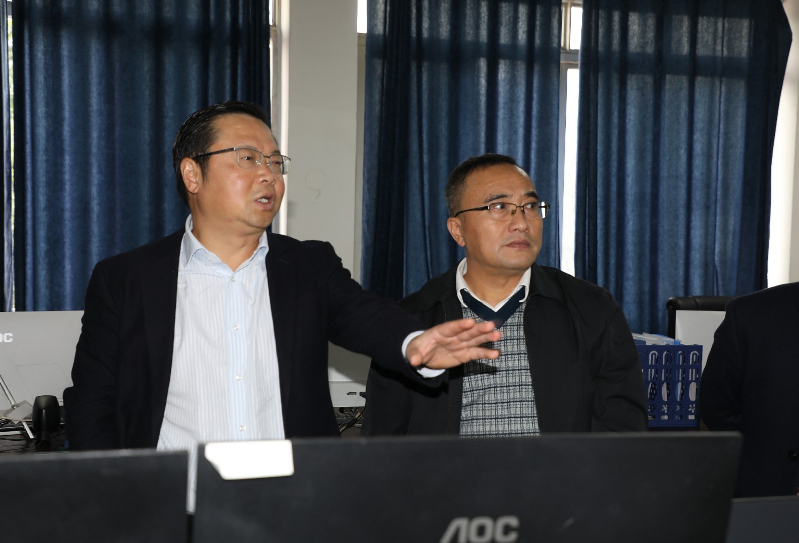 调研组一行来到矿山就直奔嘉阳煤矿,查看企业疫情防控工作,在煤矿安全监控中心,通过视频监控了解矿井安全生产情况,重点了解智能化综采生产工作,指导嘉阳电煤保供。