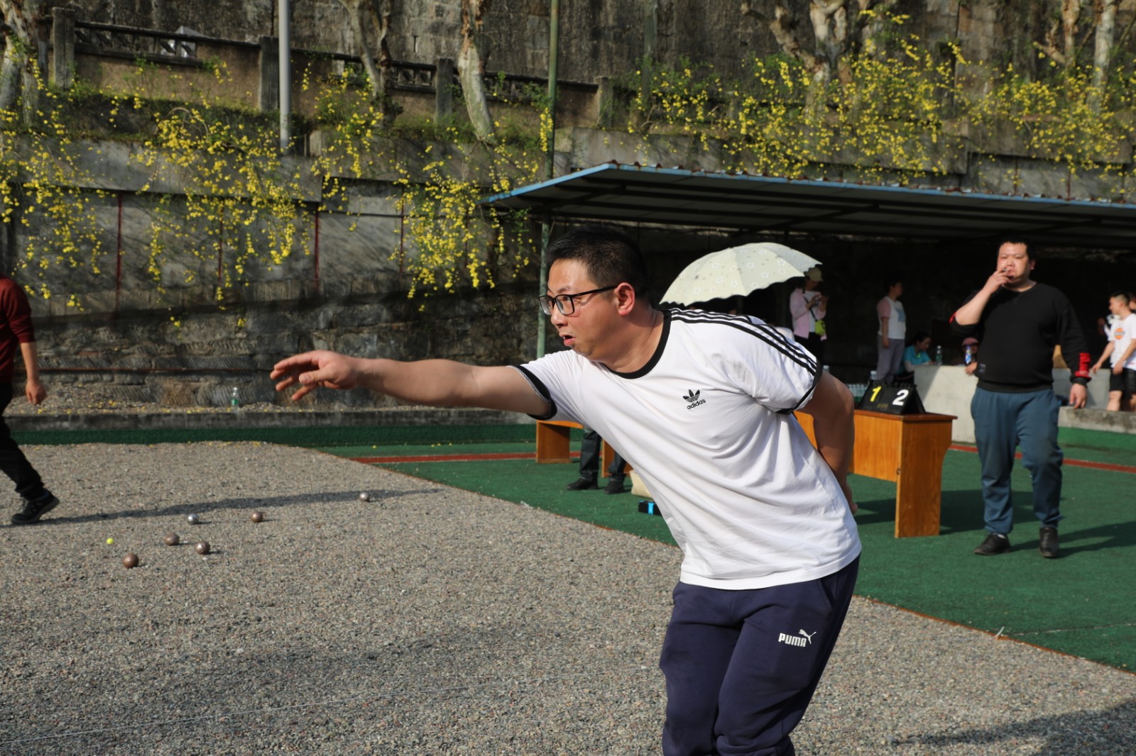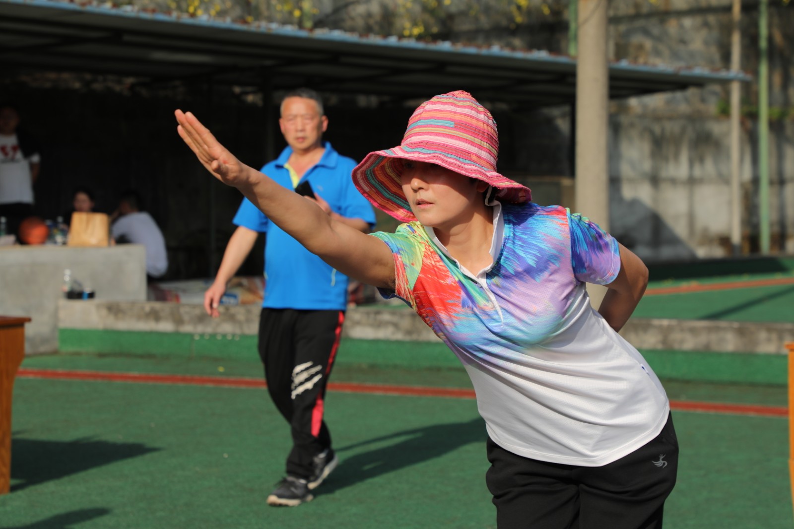 本次地掷球运动共设置塑质球男子组、塑质球女子组、混合小金属球三个项目,均采用单循环赛制。比赛开始,主裁判员抽签决定双方的抛球权,参赛队员运用滚靠、抛击或滚击技术围绕目标进行争夺,比赛的形势往往是瞬间即变,妙趣横生。赛场上,老将们宝刀未老、风采依旧,滚靠、滚击、抛击,精彩绝技层出不穷。代表队中也不乏“新手”,大家调整心态、屏息凝神,在教练员的现场指挥下,努力掷好每颗球,不少“新手”队员都超常发挥。