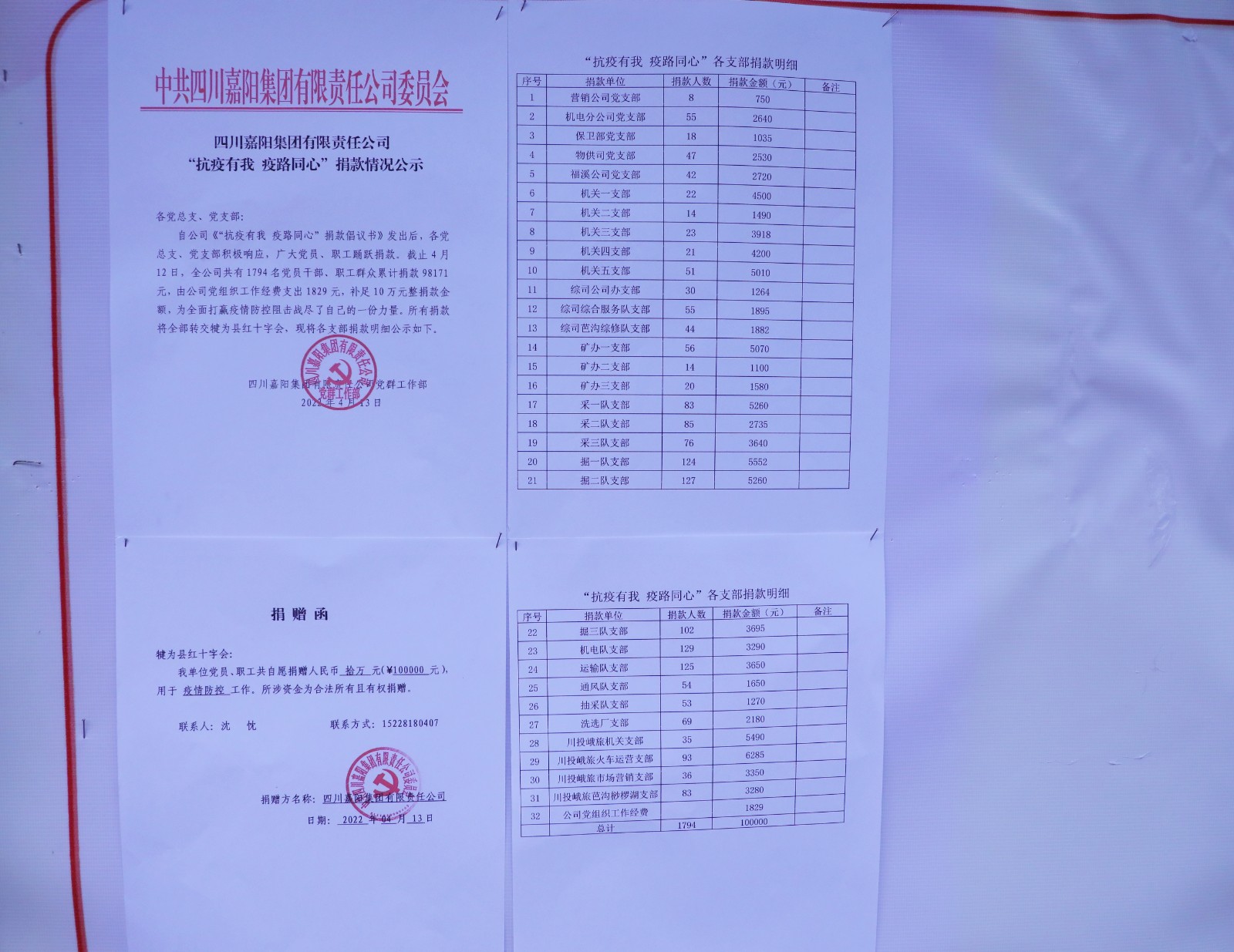 大音希声,大爱无形。这承载着星空(中国)党员、职工爱心的捐款已通过公司转交到犍为县红十字会,定向用于核酸检测、防护用品、医疗药品保障供给。虽然这点微薄的捐款不足以承担巨额的防疫需求,但却映照着嘉阳人“燃烧自己、照亮世界;奉献自己,服务社会”优良品格。衷心祝愿犍为县圆满顺利打赢这场疫情防控阻击战,祝愿我们的父老乡亲平安健康!