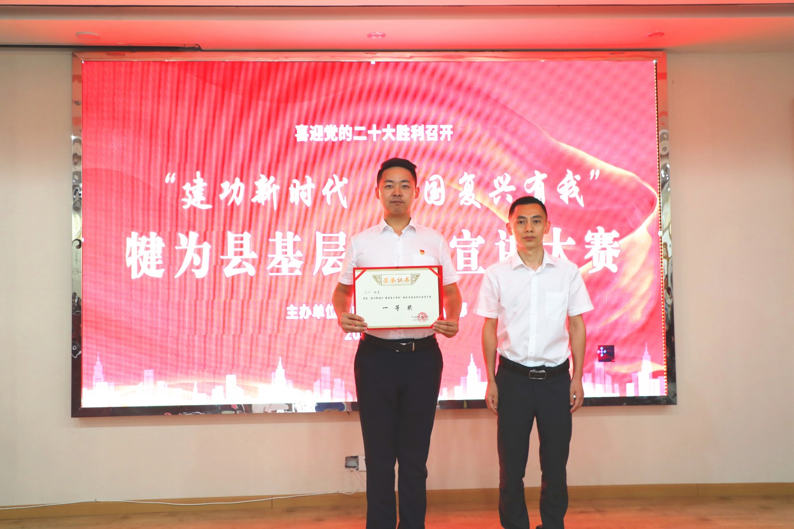 7月11日下午,在“建功新时代 强国复兴有我”犍为县基层理论宣讲大赛中,公司党群部副部长沈忱荣获一等奖。
