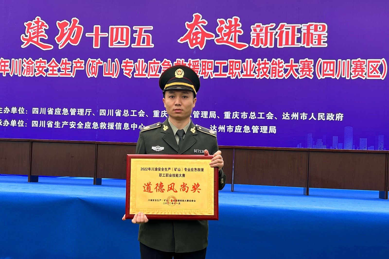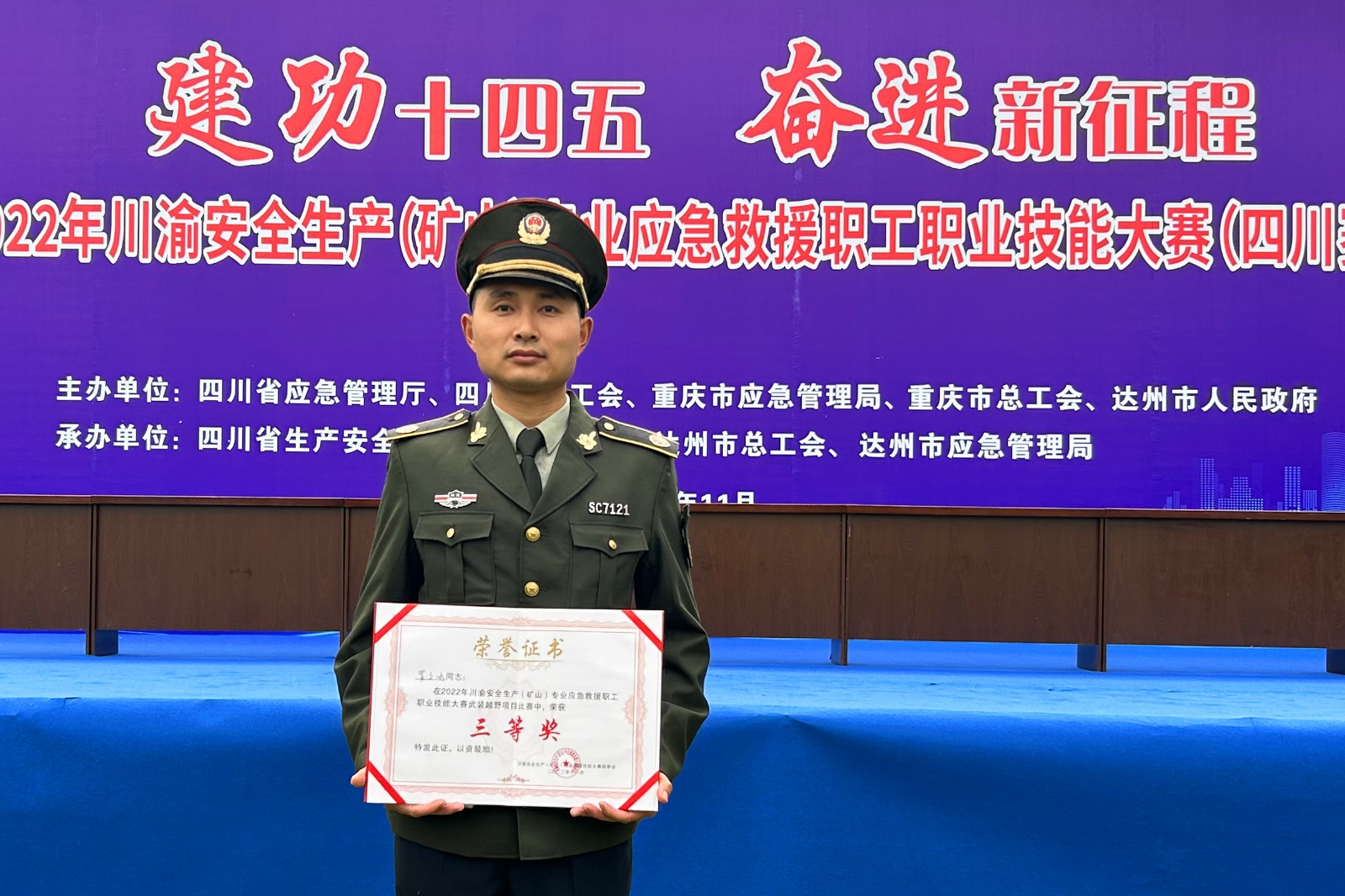 11月23日至24日,川渝安全生产(矿山)专业应急救援职工职业技能大赛在四川省达州市举行,星空(中国)矿山救护队参赛队员贺文冰荣获武装越野项目三等奖。