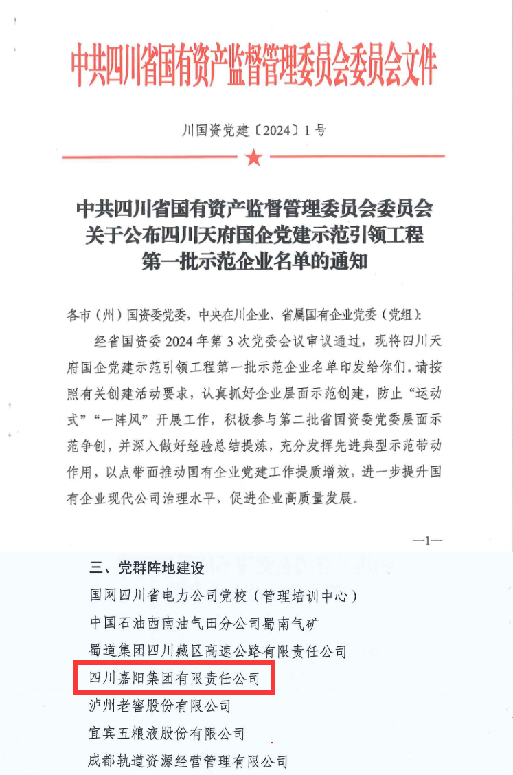 近日,省国资委党委以川国资党建〔2024〕1号文件公布四川天府国企党建示范引领工程第一批示范企业名单,星空平台榜上有名。