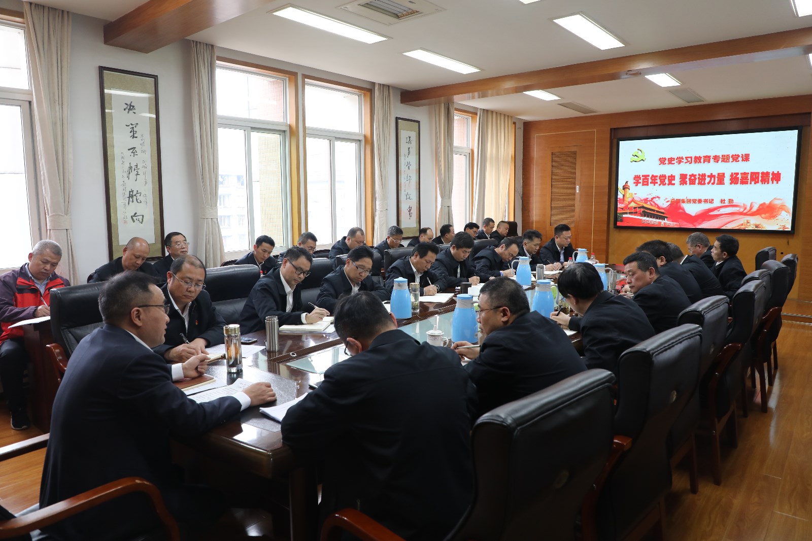 党委副书记谢建国同志对党史学习教育工作做出安排。要求各级党组织要提高政治站位、把握总体要求,按照学习教育实施方案认真开展此项工作。结合本单位实际,创新方法手段,五项规定动作要不折不扣,自选创新活动要丰富多彩,通过系列活动在学史明理中增强政治判断力;在学史增信和学史崇德中增强政治领悟力;在学史力行中增强政治执行力。通过“学党史,悟思想,办实事,开新局”,使党史学习教育落到实处,取得实效。