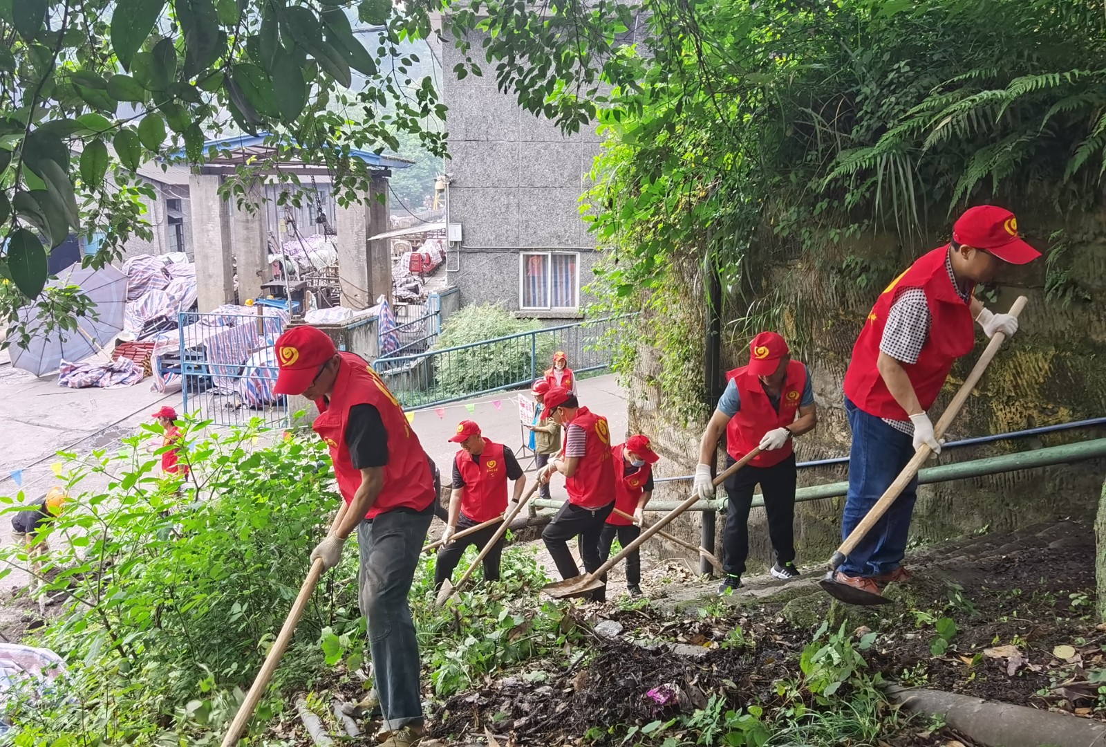 5月20日,嘉阳煤矿矿办一二三支部联合开展“劳动者最美丽”主题义务劳动,18名党员干部集中力量半小时全面清除机电队机组班外山坡和水沟旁的杂草。